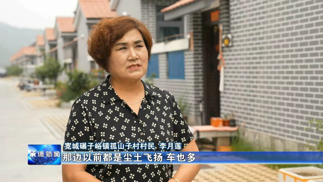 【宽城碾子峪镇孤山子村村民 李月莲】:我们以前在河那边住,那边以前都是尘土飞扬,车也多。现在我们搬到众和小区,这就是我家,我家环境现在挺满意挺美,道路都是水泥路。从我们村建学校以后,孩子上学也挺方便,我感觉现在挺幸福。