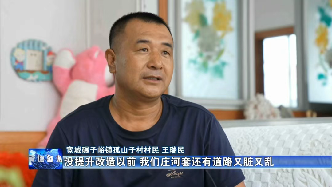 【宽城碾子峪镇孤山子村村民 王瑞民】:没提升改造以前,我们庄河套还有道路又脏又乱。现在经过提升改造,都给道路硬化上了,每户安装空气热能,还有外墙保暖都给做了。现在和以前一比,真是发生了很大的变化。现在我们感觉特别幸福,特别舒心在这个村子里住着。