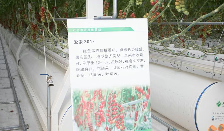 雄安智慧农业科技园种植的“爱索301”红色串收樱桃番茄