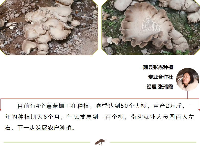 记者在食用菌大棚里看到,菇农们正在翻整土壤,这种以废弃的杏鲍菇菌棒作为土壤、液体菌种培养技术播种的方式,大大提高了生产效率和产品质量。而在过去,杏鲍菇生产后的废弃菌包往往被当作有机肥原料出售,产值较低。该村引进杏鲍菇废弃菌包二次利用技术后大大提高了资源利用效率。已经生长成熟的的灵芝菇菌盖呈扇形或圆形,生长周期短,产量高,一月一茬,每茬亩产可达1.5-2万斤。因其营养价值丰富,以及独特的口感和养生价值深受消费者喜爱,市场前景广阔。