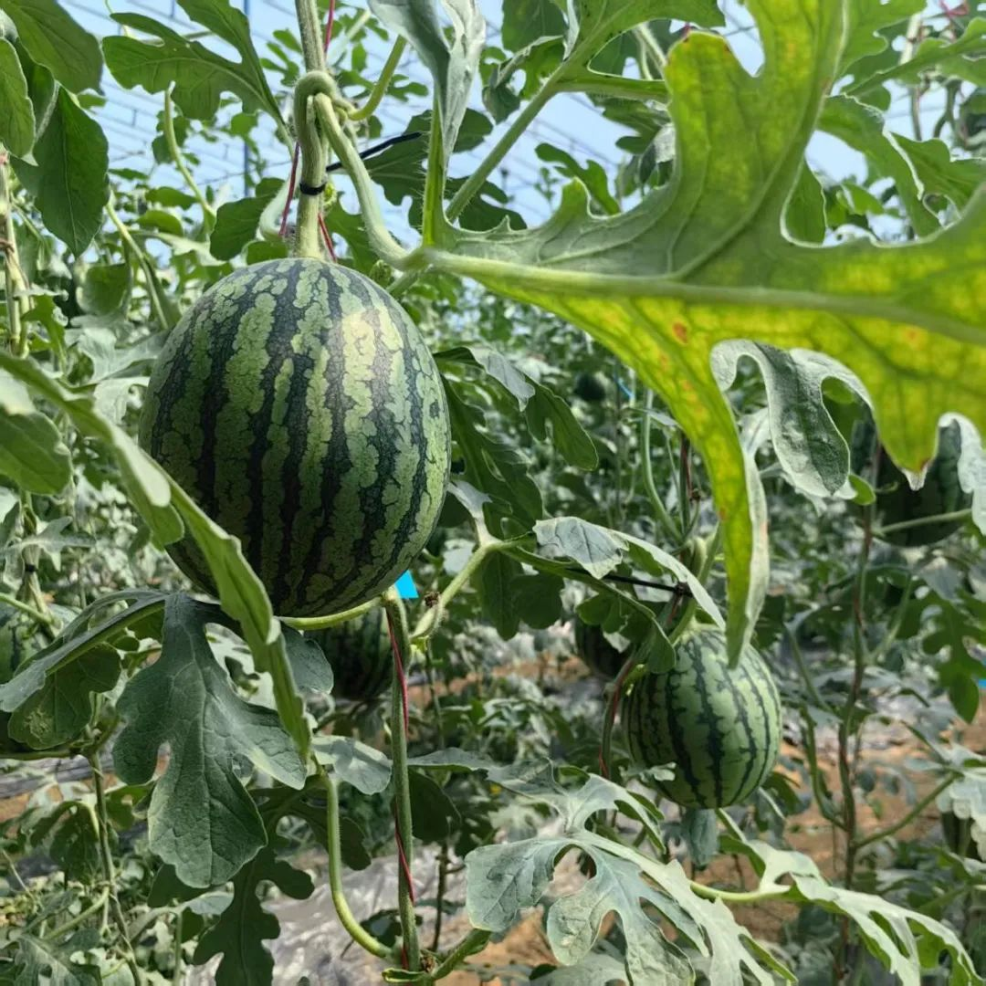 据了解,所谓的“吊秧西瓜”是一种通过“垂直栽培技术”种植西瓜的方法,主要利用支架、绳索或网架将西瓜藤蔓吊起,使西瓜悬挂生长。与常见的露地西瓜相比,由于是立体种植,适合高密度栽培。此外,果实悬空,避免接触潮湿土壤,降低烂果、病虫害风险,藤蔓和果实受光更充分,甜度和外观更优。