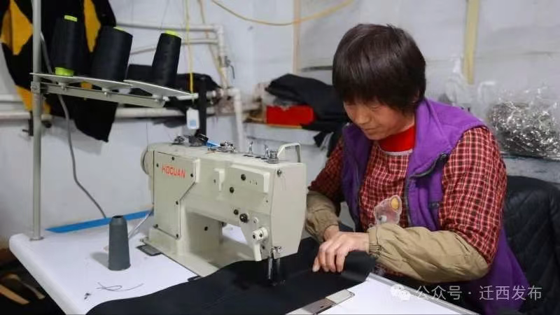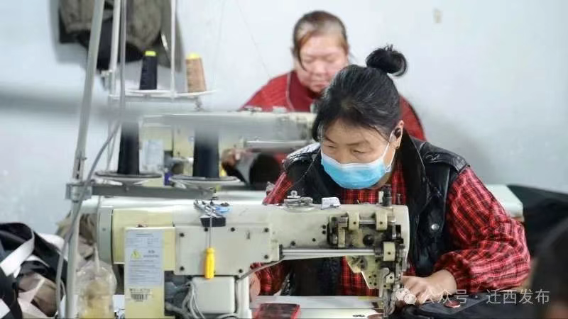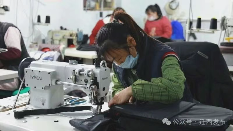 近日,记者走进太平寨镇马家峪村晓红箱包加工厂,立即被一台台缝纫机合奏出的一曲欢快的劳动乐章所吸引:数十名女工神情专注,一边脚踩缝纫机,一边迅速翻动布料,伴随着节奏紧凑的“哒哒”声,一个个初具雏形的箱包便出现在台面上。