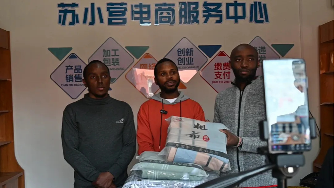 为打开销路,村里建起电商直播间。苏小营村党支部书记关社堂变身“带货主播”,更与科技小院的留学生联手,将老粗布的道道工序“搬”上屏幕,让产品销往全国各地。电商直播带动的不止老粗布一项产业,还有村里同步开发的榆木茶板、毛绒玩具等特色产品,集体收入大幅提高。