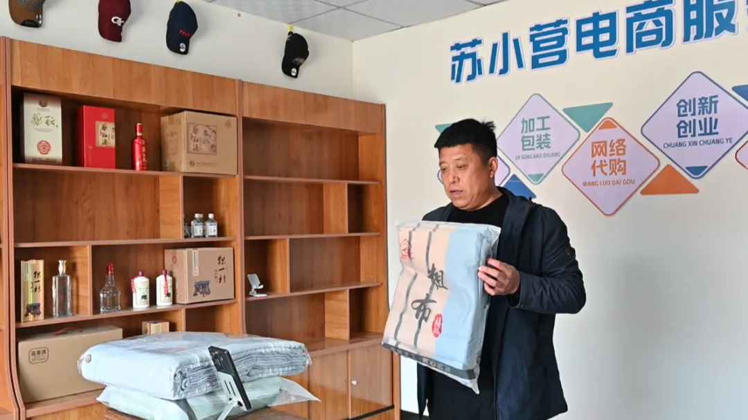 “我们积极响应县里‘一品一播’号召,在村里建了一处电商小屋,平时卖卖村里的老粗布、榆木茶板、毛绒玩具等商品,把苏小营村的好品好物通过电商平台卖出去,为村集体经济发展贡献一份力量。”关社堂表示。