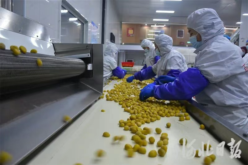 在产业末端,青龙满族自治县推进电商与实体产业深度融合,积极拓展产品增值空间。近年来,该县以“三级书记”抓电商为牵引,构建现代物流体系,实现396个行政村便民服务站全覆盖,县乡村三级物流体系全面贯通。2024年,该县网络零售额突破26亿元,连续4年增速15%以上。4月2日,在青龙满族自治县百峰贸易有限公司板栗深加工车间,工人在挑选板栗仁。河北日报、河北日报客户端记者张辉摄