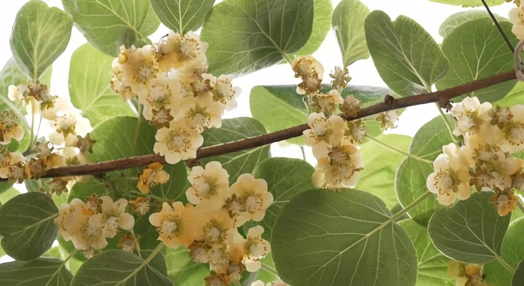 走进种植园,满园的猕猴桃正值盛花期,农户正在对果树进行管理,疏花、拔尖、抹芽......猕猴桃雄花为淡黄色,直径2厘米左右,散发出浓烈的芳香味,外观十分艳丽,具有很高的观赏价值。据了解,猕猴桃花有花柱、花丝,授粉后柱头2日内开始变黄,然后花柱逐渐变成果实。由于猕猴桃存在雌雄异株的特点,必须依靠外界良好的传粉才能够充分结实。授粉良好的植株,果形好、产量高、品质佳、个头大、风味好。因此,在生产中果农大多采用人工授粉,可大幅度提高坐果率和商品果率,加之专业技术人员对猕猴桃树的悉心照料,才会结出“颜值”与口感俱佳的猕猴桃。
