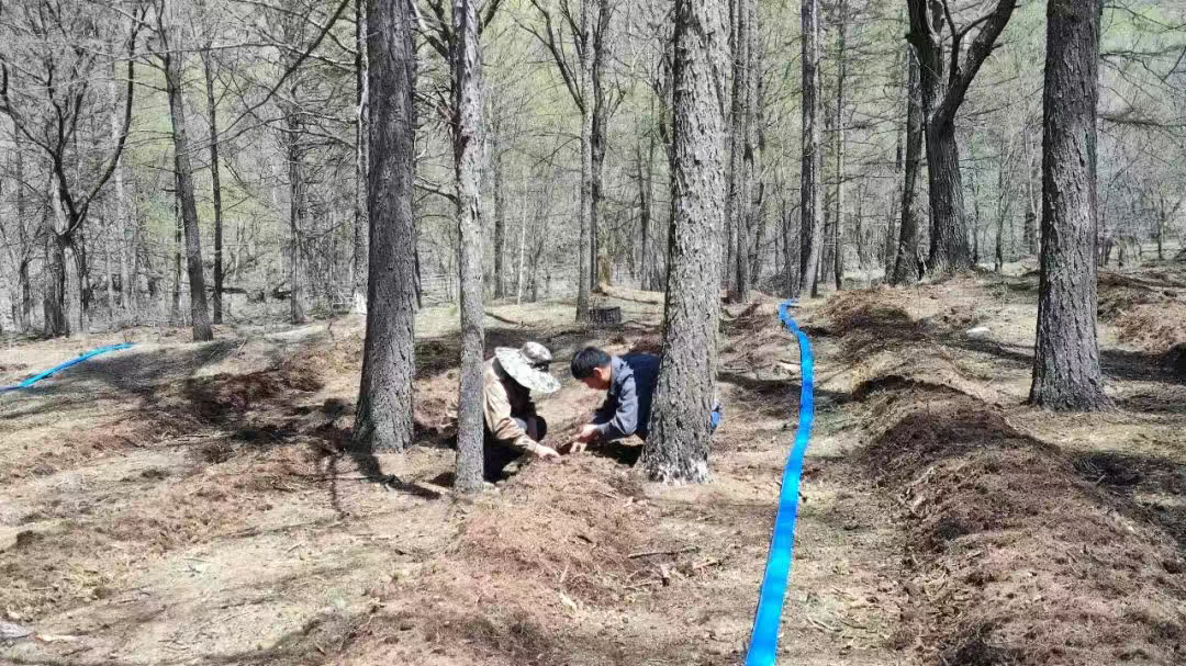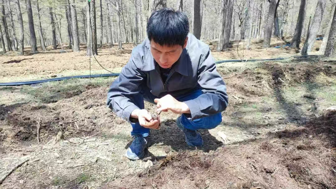 走进黑龙山林场,郁郁葱葱的林木间,整齐排列的地垄向远方延展。新种下的赤松茸菌丝在腐殖土层下悄然生长,孕育着丰收的希望。作为这片试验田的“掌舵人”,三道川村党支部书记张海云正蹲在菌床旁,仔细查看菌丝的生长情况。三道川地区属于林区,因为耕地不多,所以今年中央1号文件出来以后,说要大力发展林下经济,黑龙山林场有18万亩的林地,所以我们想把它利用起来。