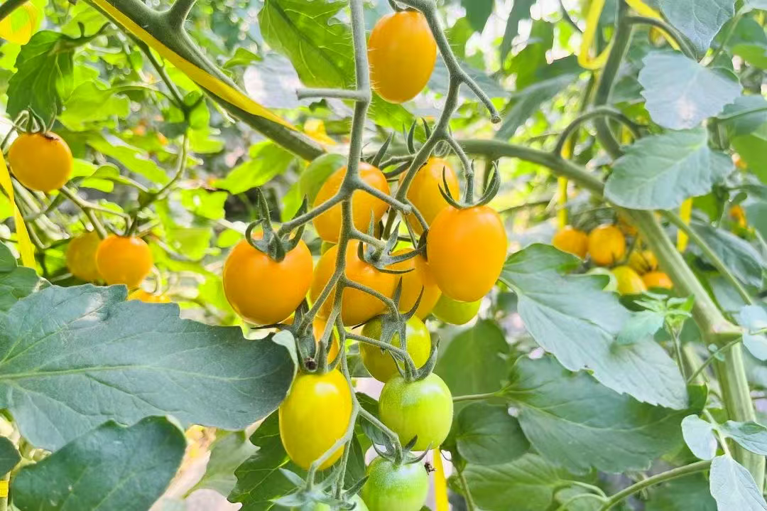 走进方周农场的番茄大棚,成串的番茄缀满藤蔓,红黄相间的果实犹如宝石般晶莹剔透,清甜果香扑面而来。据农场负责人刘方周介绍:“我们农场坚持生态种植,采用自然授粉、有机肥发酵、物理防虫技术等,摒弃化学农药和激素,种出的番茄皮薄多汁,口感酸甜适中。”