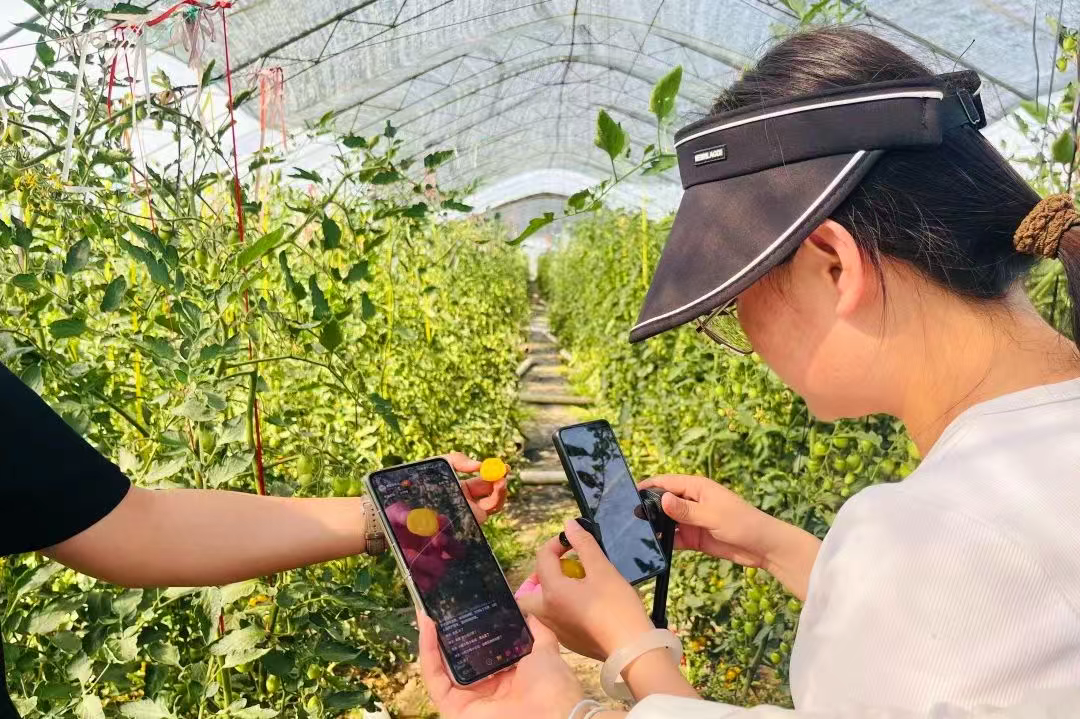 界城镇“一品一播”负责人杨淑芳介绍道:“我们通过‘一品一播’直播镜头将方周农场小番茄推销给全国各地的观众,还组织专业团队拍摄短视频,展现番茄从种植到采摘的全过程。同时,邀请本土网红在抖音、快手等平台开展‘番茄采摘’直播,帮助农场提升销售额。”