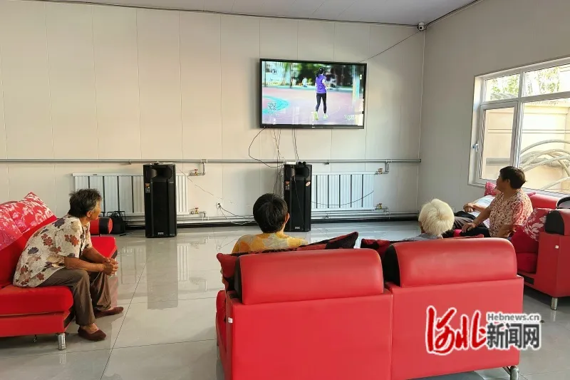 近日,在乐亭县乐亭镇新埝村居家养老服务中心内,老人们看电视节目。