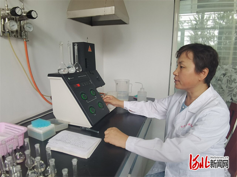 6月25日,省农林科学院农业资源环境研究所研究员王丽英通过实验测定蔬菜作物中钾含量。 河北日报记者 李冬云摄