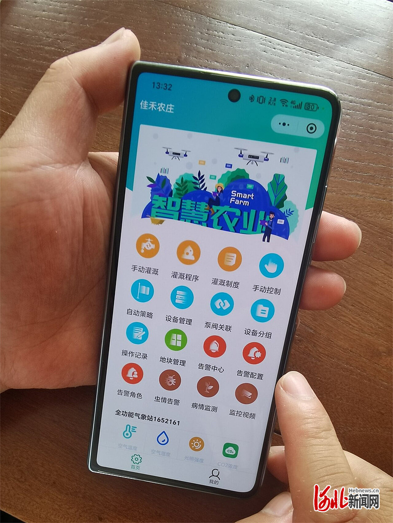 河北水润佳禾农业集团股份有限公司开发的数字农业管理平台,管理员可以通过该平台进行气象、土壤等数据监测,并对农作物进行水肥管控(摄于2025年6月23日)。 河北日报记者 李冬云摄