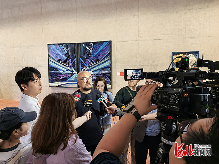7月15日,第一期“岩・talk”活动在岩美术馆举办,图为港澳媒体记者们在活动现场进行采访。姚恒嘉摄