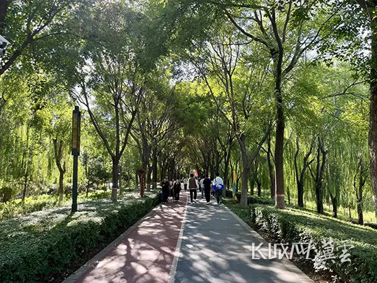 市民在霸州牤牛河历史文化公园散步、游玩。长城网·冀云客户端 通讯员 刘杰 摄
