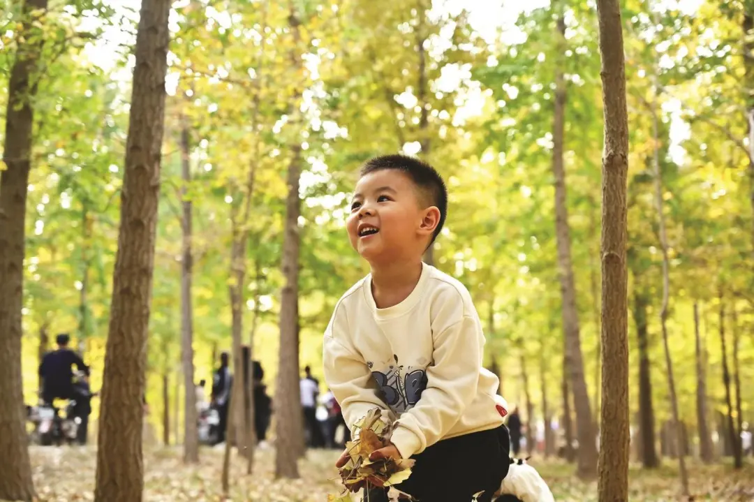 树与风嬉闹,人同叶相视。霜降给凤城带来了阵阵凉意,却无法掩饰金叶飘、玉枝摇的火热银杏林,10万余株银杏树和如织的游人一起勾勒出一幅文旅融合的绚丽画卷。