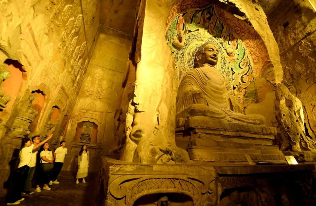 当夜幕降临,华灯初上,大家漫步于古寺、石窟之间,一边感受虔敬而庄重的氛围,一边参与当晚的重头戏——点灯祈福。