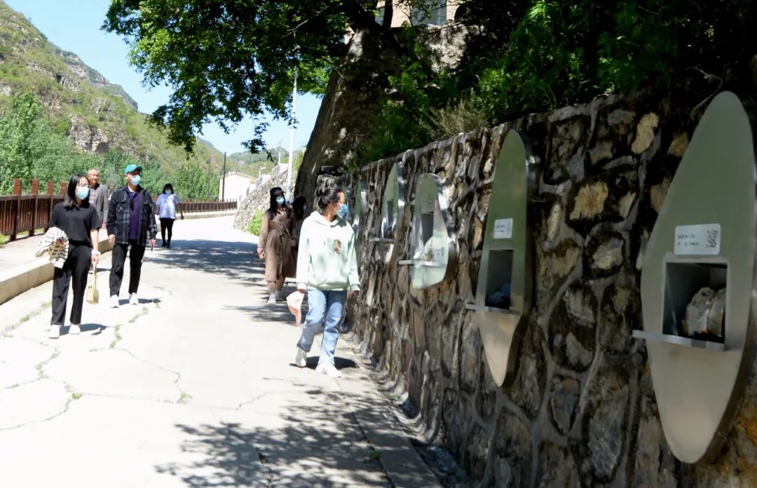 漫步村中,遇见一扇百米岩矿标本展示墙。从沉积岩、岩浆岩、变质岩等岩石标本,到石英、祖母绿、孔雀石等精美矿物,诉说着关于石头的那些事儿,让人感受着地学的魅力。“当年老百姓捐房子支持革命。现在,我们发扬老区精神谋发展,追求特色化、差异化的乡村旅游。”赵剑峰说。