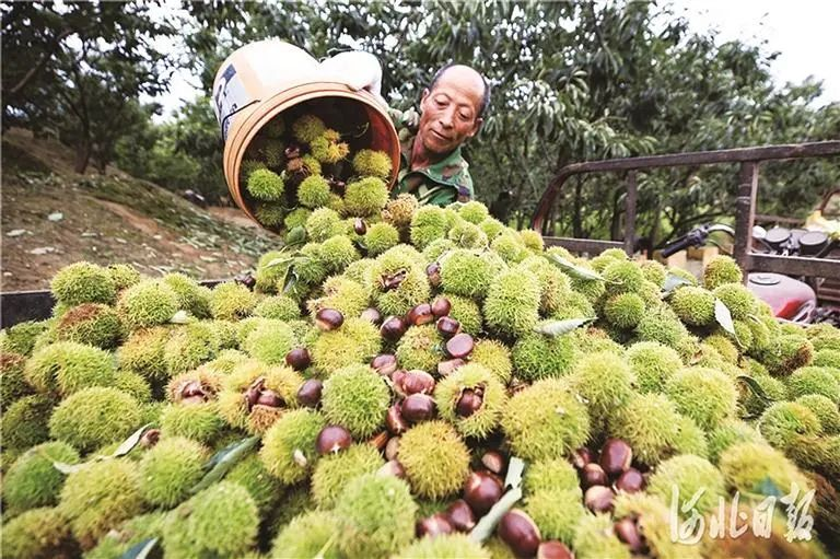 “我家有1000多棵板栗树,预计收成能达到12000多斤。看着这些树从发芽到开花,再到现在结出这么多饱满的板栗,心里别提有多高兴了。”栗农刘敬原笑着说。