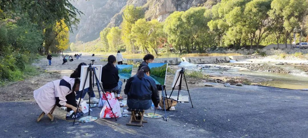 大山深处的涞水县九龙镇大龙门村,铅笔摩擦纸面的沙沙声,与微风声、流水声、鸟叫虫鸣声相映成趣。群山环绕的山坳里,一节特殊的美术课正在进行:一群00后美术生,坐在画架前,以天地为课堂,与自然对“画”。