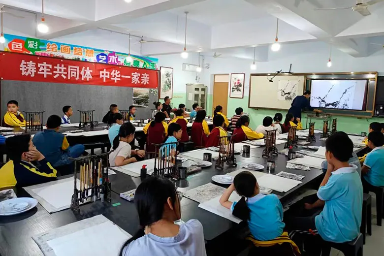 民族工作多点开花。深入开展铸牢中华民族共同体意识宣传教育,积极探索“两带多节点”民族团结进步创建工作新路径,分层次、分领域、分对象打造国际皮革城、王下村、贾李庄村、新城民族学校等9个点位,推动民族团结进步创建工作提质增效。大力扶持民族乡村发展特色种植、养殖等产业项目,推动帮扶项目落地落实。以全省民族团结进步宣传月为契机,组织开展体育比赛、书画笔会、中国农民丰收节民俗表演等多种形式的宣传活动,全方位营造民族团结进步浓厚氛围。2024年9月,辛集市新城民族学校开展“铸牢共同体 中华一家亲”国画进课堂活动