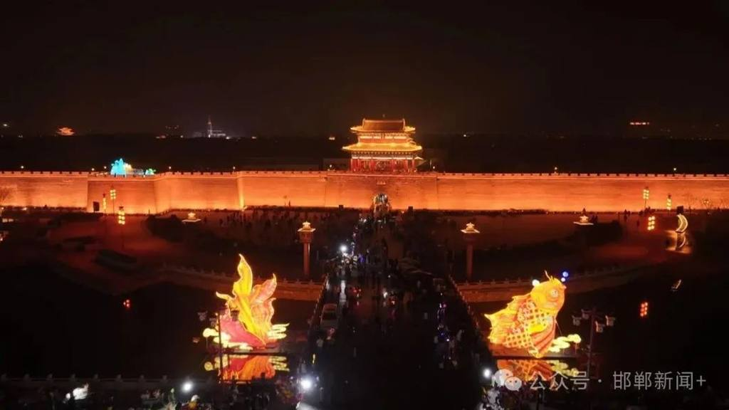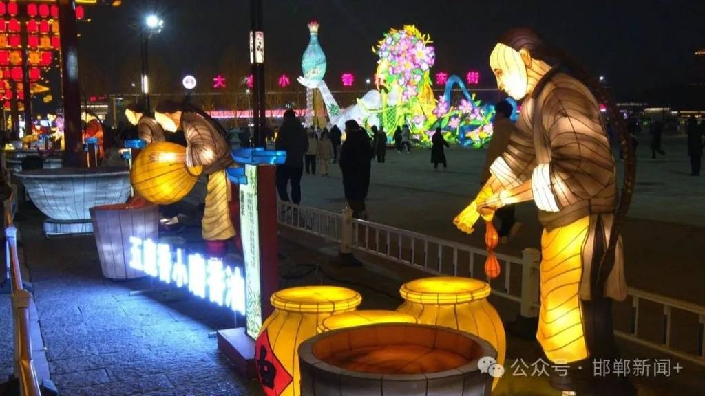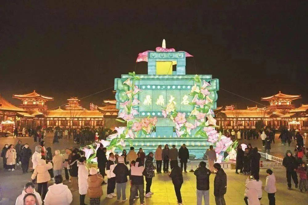 暖黄色的光芒与“鱼跃莲辉”花灯交相辉映