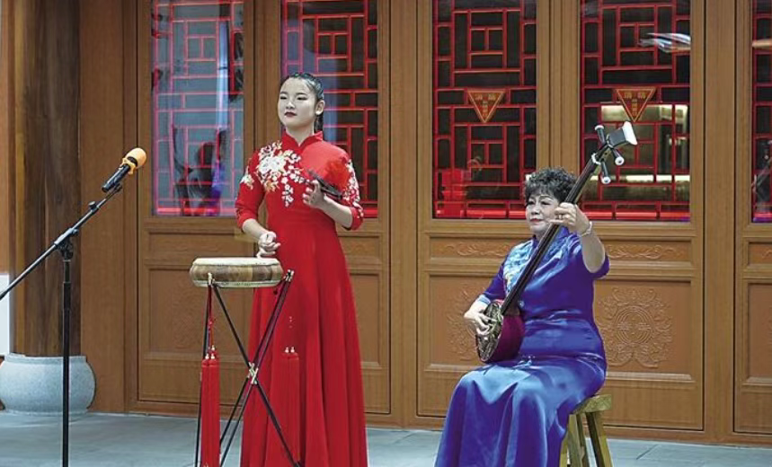 不久前,河北大学文学院“大运河口头文化遗存”调研团来到我市,对沧州木板大鼓进行了深入调研。调研团采访了沧县文化馆馆长孙健及多位传承人,深入了解了木板大鼓的历史渊源、艺术特色和传承现状。国家级非遗传承人刘银河和王银杰为调研团讲述了木板大鼓的历史,并演唱了《苏梅山卖妻》《贾宝玉夜探潇湘馆》等经典鼓书。