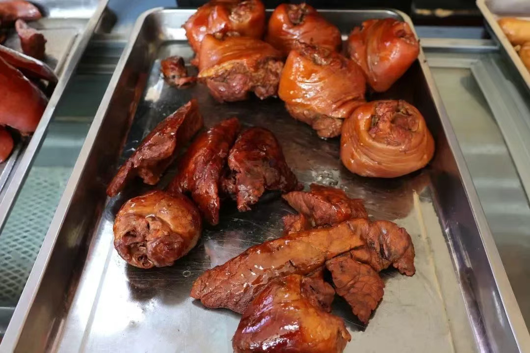 源自明朝皇宫御宴的传统佳肴——“和村三饭”,历经数百年传承,至今保留着最地道的烹饪技艺。小酥肉酥到掉渣,扣碗肉肥瘦相间,还有软糯脱骨的肘子肉……“主食+酒菜+13样汤菜”的豪华配置,每道菜都像在舌尖开party,尽显峰峰的饮食智慧。 和村熏肉同样不容错过,传承了400多年,精选纯粮猪头、尾、肘等部位,用多种香料老汤慢炖,最后松柏枝一熏,琥珀色外皮油亮诱人,咬上一口,皮焦肉嫩,熏香混着肉香在口中四溢,肥而不腻,瘦而不柴,令人回味无穷。