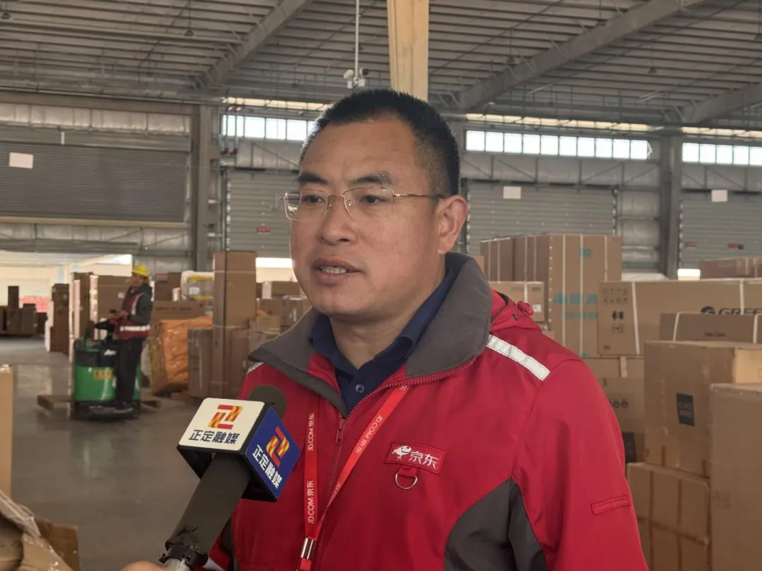 位于正定高新区的京东(正定)智能电商结算产业基地项目看到,4栋大气美观的现代化仓库与湛蓝的天空交相辉映,显得格外亮眼。仓库内,一排排货物摆放整齐,智能叉车正在往来运送。