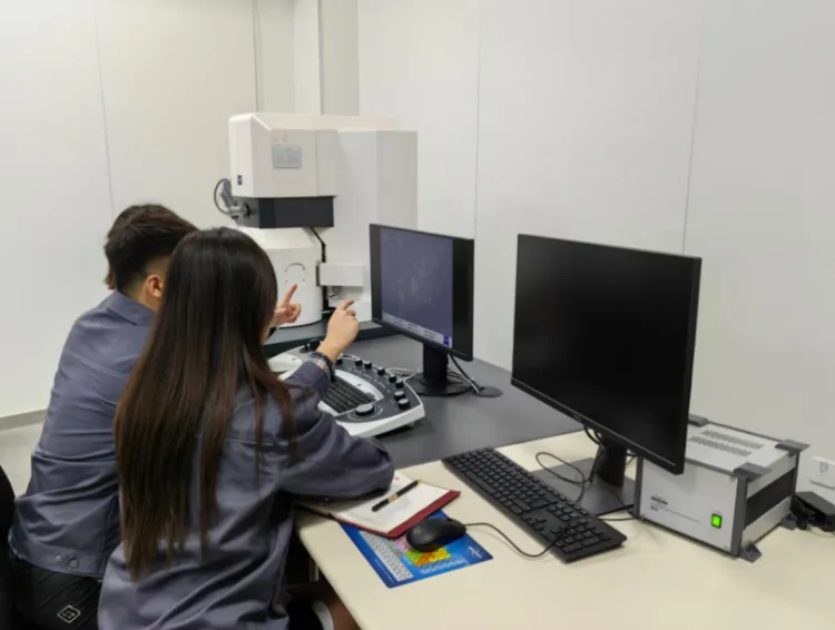 此后,公司每年都会拿出营收的3%到5%,用于研发和技改,恒温车间、研发中心、专家团队等相继落地;2022年,公司更是投入1.4亿元购进了9台(套)国际最先进的聚酯网专用生产设备。