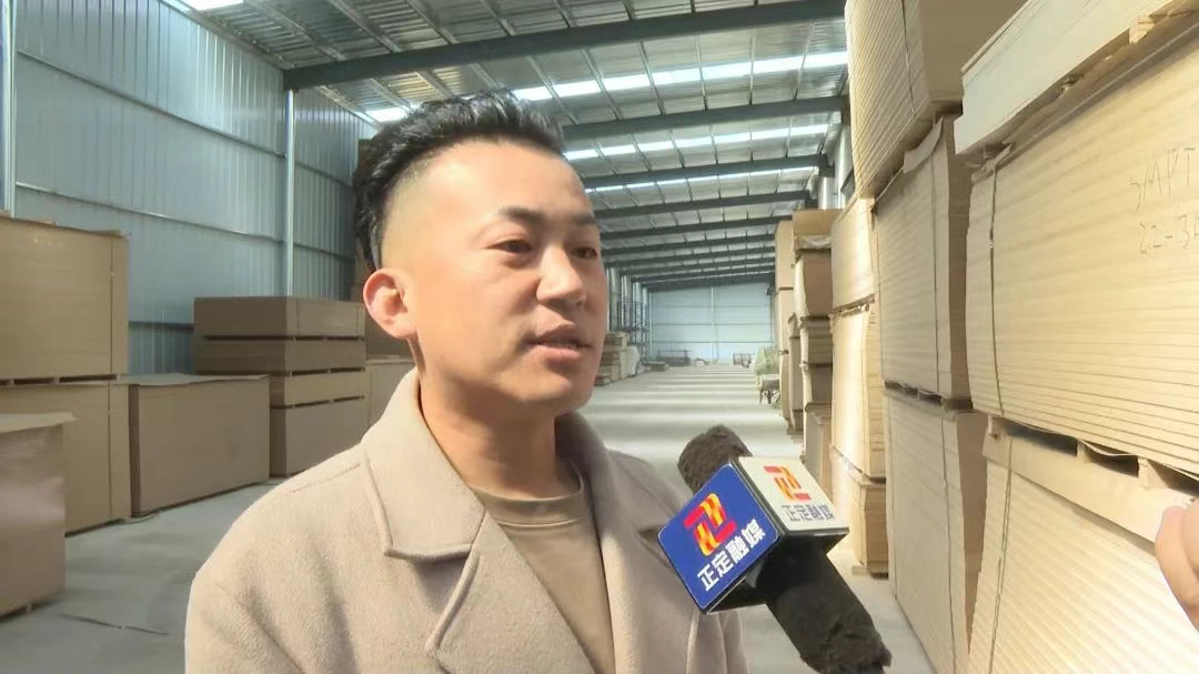 在位于南岗镇的石家庄尚恒木业有限公司生产车间,压切、降温、除尘、码垛,一条日产1500张家具板材的全自动化生产线正在加速运转。ENF级的环保板材整齐摆放在仓库,准备陆续发往京津冀周边板材家具市场。