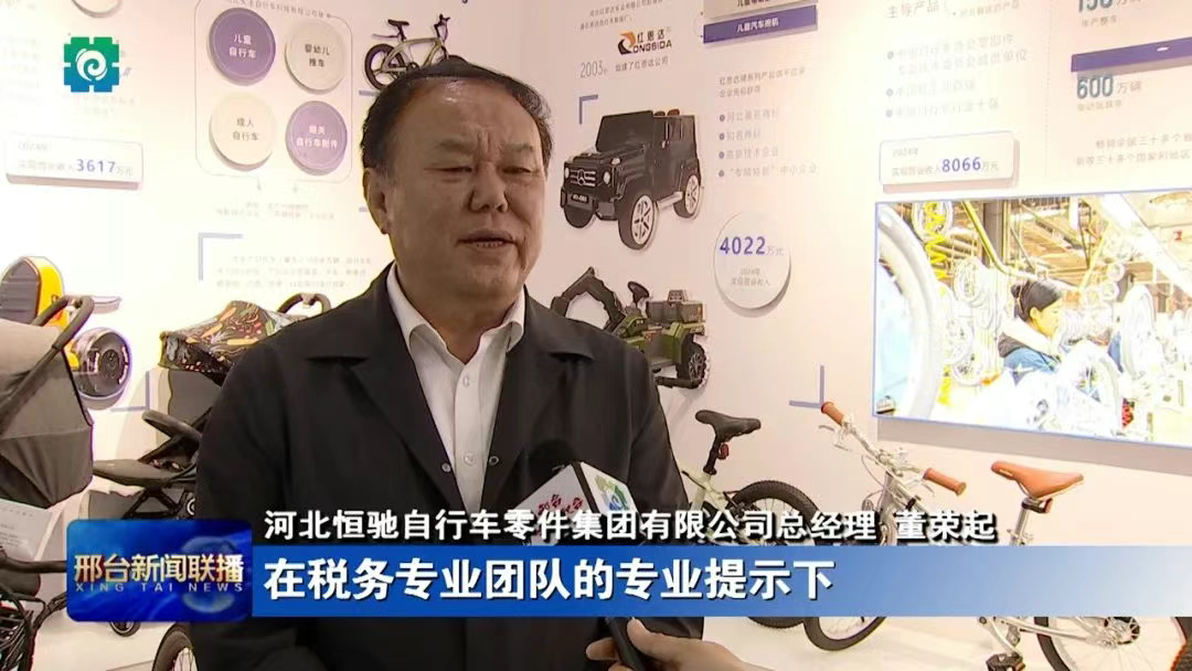 【河北恒驰自行车零件集团有限公司总经理 董荣起】在税务专业团队的专业提示下,我们及时识别并有效地规范了潜在涉税风险,为企业发展筑牢合规根基。今年我们的产值预计超亿元,税收服务的精准助力为企业开拓市场、稳健前行注入了强劲动能。